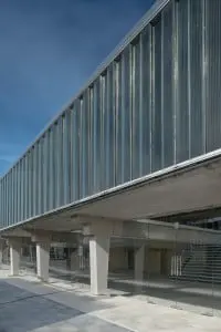 3 en 5. World of Food, Amsterdam Zuidoost. Een voormalige parkeergarage bij een inmiddels gesloopte Bijlmerflat. Architecten Harvey Otten en Ted Schulten zagen, herschikken en vullen aan. De foto’s tonen het voltooide casco, een naakt betonskelet met staal en glas. Een tussenvorm, want binnenkort bruist het hier: er komen kraampjes en restaurants met ‘international streetfood’.