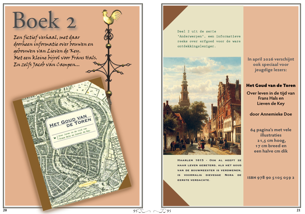 Het tweede boek is een jeugdboek van de hand van Annemieke Doe. Het boek heet: ‘Het Goud van de Toren, over leven in de tijd van Frans Hals en Lieven de Key’. In dit geval gaat het om een verzonnen verhaal waarin echter ook informatie over bouwen en gebouwen van Lieven de Key is opgenomen.
