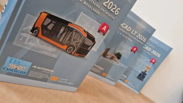 Bij elke nieuwe release van AutoCAD, Inventor, Fusion en Revit publiceert TEC/CAD College bijpassende leerboeken. Bestemd voor bedrijfsleven, scholen en zelfstandige gebruikers. Als eerste in de reeks van dit jaar zijn de boeken voor AutoCAD 2026 en AutoCAD LT 2026 uitgebracht.
