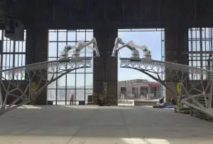 Vrijdag 16 oktober is op de NDSM-werf in Amsterdam-Noord een bouwlocatie geopend waar industriële robots de volledig functionele brug gaan printen. Zodra het printen klaar is, komt de brug te liggen over de Oudezijds Achterburgwal, midden op de Wallen. “We willen laten zien dat je met een 3D-printer nieuwe vormen kan maken”, zegt Tim Geurtjens van MX3D. De brug zal dus niet lijken op andere bruggen op de Wallen.