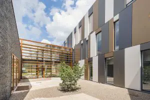 Het ontwerp van het ziekenhuis Maas en Kempen in Maaseik is van de Jong Gortemaker Algra architecten in samenwerking met architectenbureau archipelago| ar-te. Het ziekenhuis is gebouwd met leisteen, glas en Accoya® hout. Duurzame materialen met oog op de toekomst.