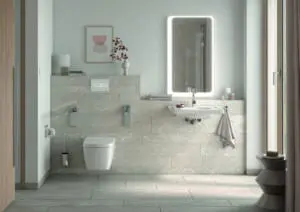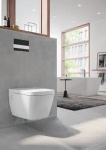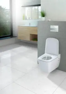 Voor een gunstigste prijs krijgt men een elegante douche-wc in een tijdloos design die met vele stijlen is te combineren. De toiletpot heeft de moderne randloze (rimfree) uitvoering waarin zich door de effectieve wijze van spoelen, nauwelijks vuil en bacteriën kunnen ophopen. Deze rand is bovendien goed bereikbaar en dus makkelijker schoon te houden. Dit komt de hygiëne ten goede. Bij de vormgeving van de wc-bril stond naast ergonomie, eveneens hygiëne centraal. Immers, een glad oppervlak zonder smalle openingen en randen is gemakkelijker te reinigen, omdat vuil minder goed kan hechten.