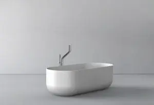 Water neemt de vorm aan van het object waarin het zich bevind. Dat is het uitgangspunt geweest voor het ontwerp van de flow series. Het resultaat is een kraan met een vloeiende, zachte lijn met ronde vormen, waar het water op een verrassende manier uit komt. Tijdens de ontwikkeling van de kranen voor de flow series, is de behoefte ontstaan voor een complete serie inclusief baden. Het Amsterdamse ontwerpduo Grand & Johnson heeft de uitdaging aangenomen en hebben de baden voor de flow series ontworpen.