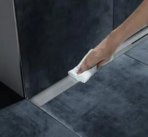 Hygiëne is altijd essentieel, niet alleen in deze tijd. Vanuit dit perspectief heeft TECE haar TECEdrainprofile doucheprofiel een aantal slimme eigenschappen meegegeven voor maximale hygiëne. Zo is het doucheprofiel over de volle lengte van een helling voorzien. Deze helling zorgt voor een optimale waterafvoer en een effectief zelfreinigend effect. Voor inspectie en het reinigen van de afvoer kan het profieldeksel door middel van de push-functie makkelijk worden uitgenomen. Daardoor heeft men direct toegang tot de afvoer, zodat deze snel en eenvoudig is te reinigen. Het doucheprofiel behoeft slechts met een doek – en alleen aan de bovenzijde – schoongemaakt te worden. In tegenstelling tot een douchegoot waarbij het rooster eerst verwijderd moet worden, alvorens de douchegoot schoongemaakt kan worden. Bij een douchegoot duurt het reinigen langer en kost dus meer. In de praktijk blijkt ook, dat dit niet altijd even zorgvuldig geschiedt. Als laatste zorgen het geringe aantal onderdelen en de strakke vormgeving ervoor, dat er minder spleten zijn waarin vuil zich kan ophopen. Conclusie: met een doucheprofiel is een vervuilde douchegoot verleden tijd, het zorgt voor meer hygiëne en meer schoonmaak gemak!