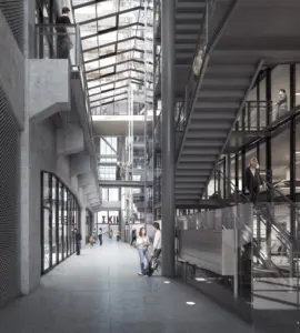 De wijk Katendrecht in Rotterdam groeide de afgelopen jaren uit van een achterstandsgebied naar een bruisende plek en gewilde wijk met culinaire, creatieve en culturele ondernemingen aan het Deliplein. Ook de transformatie langs de Rijnhaven is in volle gang. Mei architects and planners uit Rotterdam won in 2013 de architectenselectie voor de herbestemming van loods Fenix I. Op de bestaande Fenixloods komen 212 nieuwe loftappartementen die flexibel zijn in te delen, zowel horizontaal als verticaal. De voormalige loods wordt gevuld met een parkeergarage met daaromheen kadewoningen, commerciële ruimtes en huisvesting voor de dans- en circusopleidingen in het Cultuur Cluster. Om het gebouw goed toegankelijk te maken, loopt er een passage dwars door het gebouw van de Veerlaanzijde naar de Rijnhavenzijde. Glazen wanden in de passage bieden een blik in het Cultuur Cluster. ‘Zo kan de hele community in de loods elkaar zien en tegenkomen’, legt architect Robert Platje van Mei architects and planners uit.