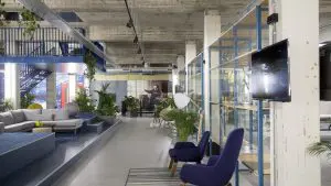 Op twee plekken is er een vide in het gebouw gemaakt: de grootste in de grote gemeenschappelijke entreehal, en een die doorloopt tot in de kelder, met pantry’s. in de gemeenschappelijke ruimtes kunnen bedrijven elkaar gemakkelijk ontmoeten, samenwerken en elkaar inspireren en versterken. rond de grote vide zijn hippe werk-, vergader- en loungeplekken, waar de huurders van gebruik kunnen maken. Daarnaast zijn er flexplekken. Deze grote open ruimte is voorzien van groene wanden en kreeg de naam The Garden mee.