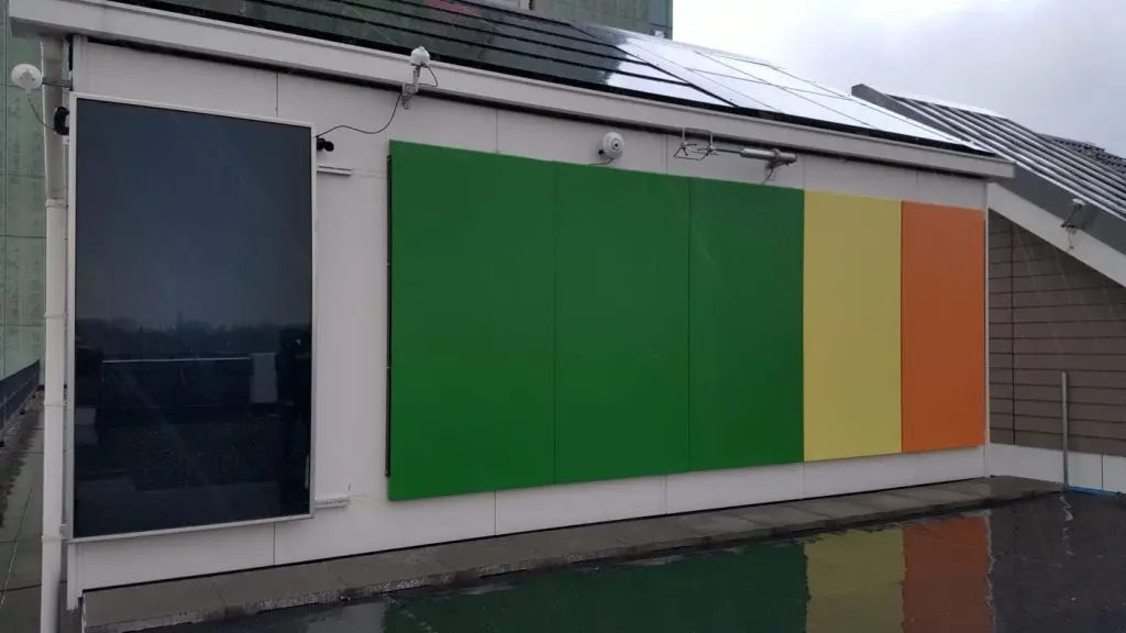 Met de aangepaste coatings is het mogelijk om gevels te voorzien van warmtecollectoren in allerlei kleuren en motieven én een hoog rendement te halen.
