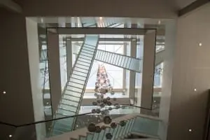 De trappen verbinden de verdiepingen met elkaar en zorgen ook voor de connectie tussen de mensen. Deze ontstaat door de open uitkijk vanuit de trappen op de werkplekken en het schouwspel van de trappen vanuit iedere werkruimte. Door het open karakter van het atrium en de trappen is er een nieuwe ontmoetingsplek ontstaan. De trappen zijn met grote zorg gepositioneerd om een ruimtelijk gevoel in het hart van het gebouw te creëren.