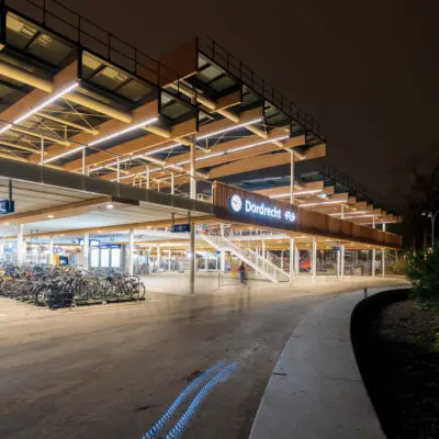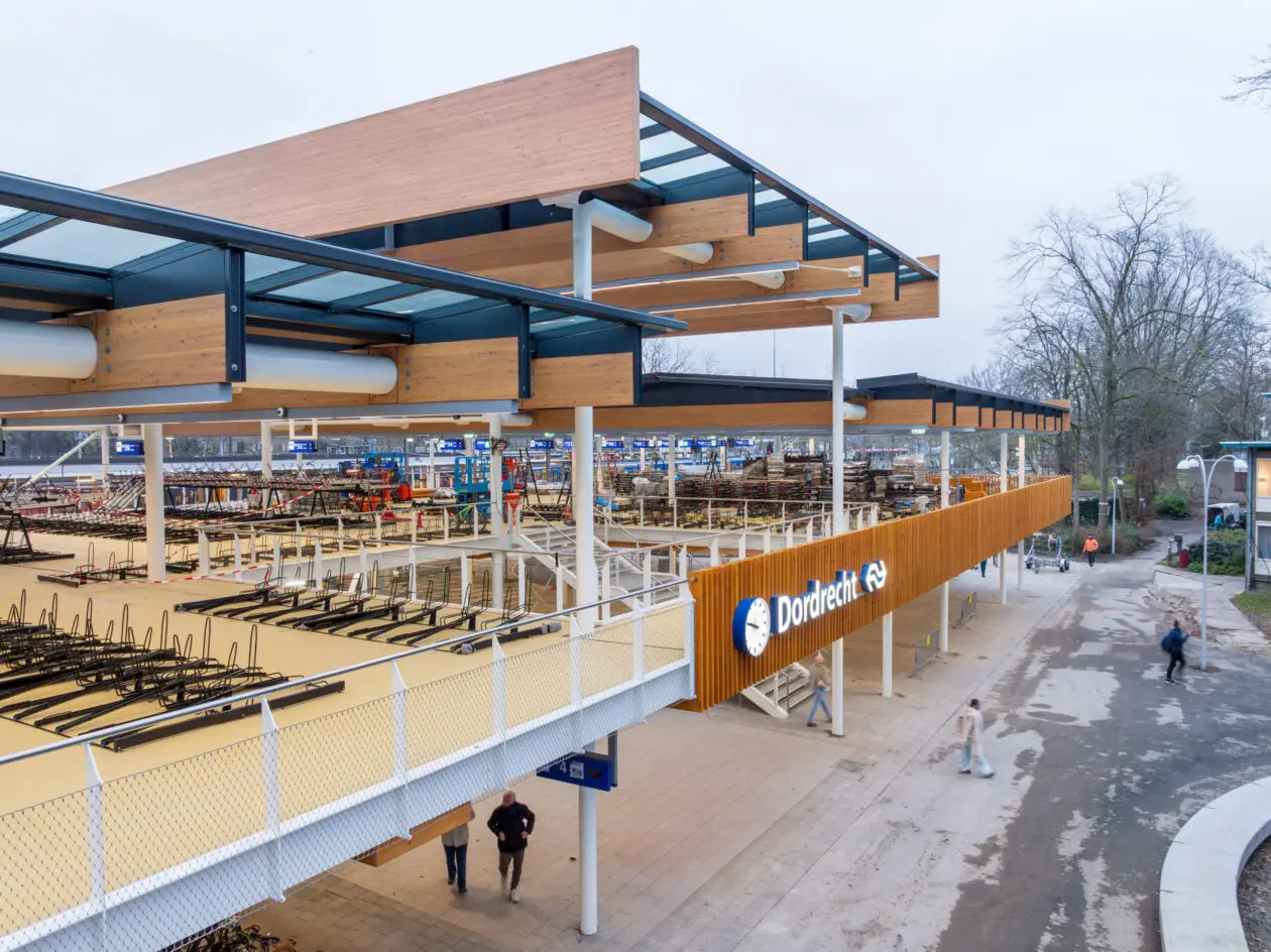 Dordrecht trapt de transformatie van de spoorzone af met de opening van een duurzame, remontabele en adaptieve fietsenstalling. Daarin is de functie van fietsenstalling gecombineerd met de ingang van het station. Het gebouw is het eerst uitgevoerde voorbeeld van de strategie en het concept ‘Biking the Station’, ontwikkeld door studioSK en biedt plaats aan circa 1900 fietsen en 60 bromfietsen.