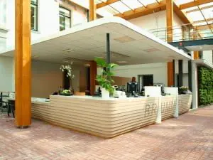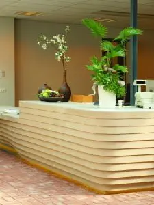 Architectenbureau RAU was gelijk enthousiast over het materiaal en ging gelijk aan de slag met de vormgeving van de balie. Om de tekeningen te kunnen vertalen naar een ontwerp werd Prima Interior Consultants in Doetinchem ingeschakeld. In nauwe samenwerking werd het materiaal getest. Hoe maak je bochten, hoe maak je verbindingen, hoe verbind je de afzonderlijke delen en hoe krijg je een brandveilige constructie? Dit proces heeft een paar maanden geduurd.