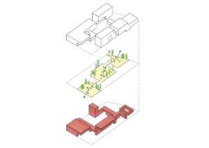 Verschillende gebouwonderdelen kunnen op eenvoudige wijze hun eigen circulaire levensloop bepalen en vormgeven. De drager fungeert daarbij als achterwand en ‘stekkerdoos’ voor transformaties over maanden of jaren. Vaste en tijdelijke uit- en inbreidingen worden in een samenhangend complex geïntegreerd.