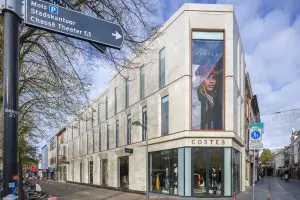 Het winkelpand waar modeketen Costes is gevestigd is onderdeel van het beschermd stadsgezicht en ligt op een belangrijke locatie, die de entree naar de binnenstad van Breda markeert. De lichte zandkleurige natuursteen (crema marfil) vormt een welkome verandering op de donkere, sombere gevel van voorheen. De antracietkleurige aluminium kozijnen en koperkleurige accenten geven het pand een eigentijdse uitstraling.