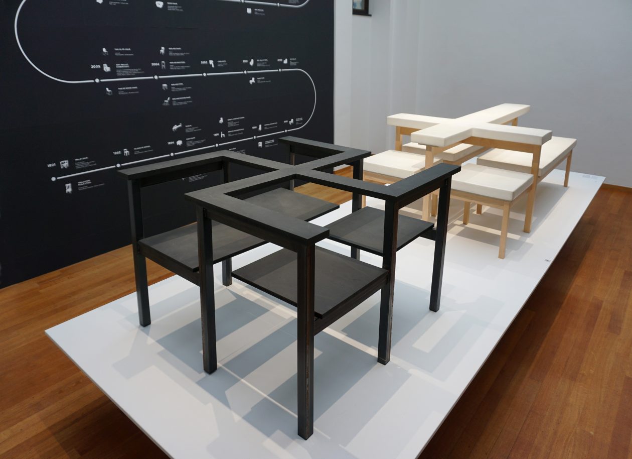 Als een stoel een delicate mix is van vakkundige vormgeving, technische innovatie, zitcomfort en uiterlijke schoonheid, samengebald in een weerspiegeling van de tijdgeest, dan kan deze zelfs uitgroeien tot een icoon. Neem de buismeubels van Mies van der Rohe en Marcel Breuer, die de maakbare toekomst van het machinetijdperk inluidden met hun industriële uitstraling. Of de Panton Chair, in 1967 de eerste stoel uit één stuk plastic van de innovatieve Deense ontwerper Verner Panton. Huttens favoriete stoel? ‘De roodblauwe van Rietveld, de eerste moderne stoel. Dit radicale ontwerp is voor mij het startpunt van design.’ In 1991 is het Richard Hutten die met zijn No Sign of Design ingaat tegen het dan dominante Italiaanse design met zijn expressieve vormen of het gelikte minimalisme uit Scandinavië. Zijn tafels en stoelen zijn nuchter, speels en vaak met humoristische twist. Geen wonder dat hij meteen na zijn afstuderen werd opgepikt door ontwerpplatform Droog Design, dat deze eigenschappen tot dogma verhief.