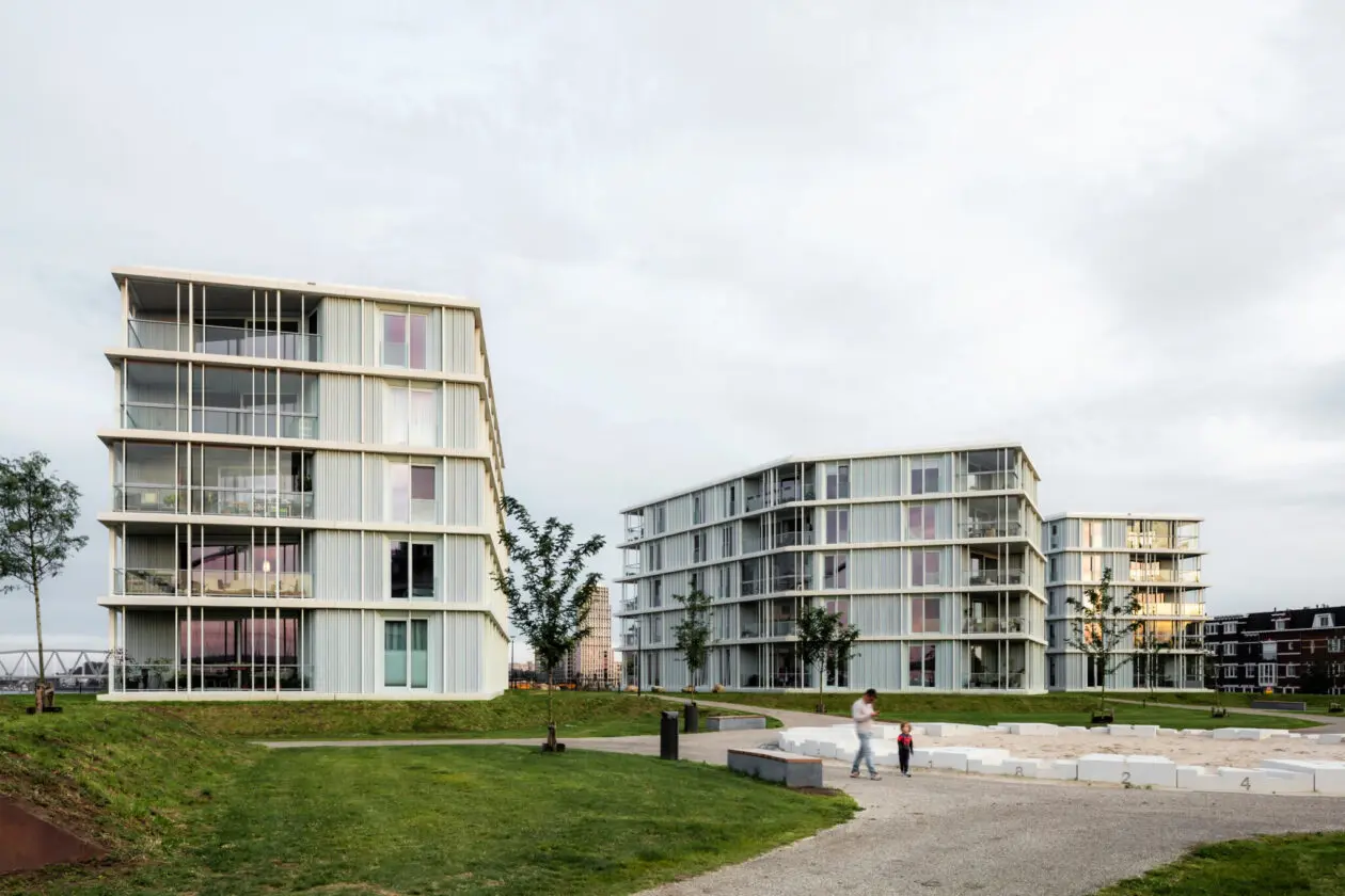 Park Fort Krayenhoff omvat drie urban villa’s die zijn gelegen in een publiek park aan de Waal. In nauwe samenwerking met landschapsarchitect bureau Oslo zijn door Orange Architects voor deze paviljoens 42 appartementen ontworpen. De vormgeving van de paviljoens is geïnspireerd op de diamantvorm van de lunetten van het verdedigingsbolwerk.