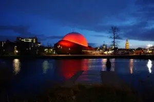 Afgelopen vrijdag werd om 5 uur ’s middags ’s werelds grootste kerstbal verlicht. In werkelijkheid is de bal de koepel van het voormalige Infoversum in het Groningse Ebbingekwartier. Gebouwd als een 3D full dome theater voor wetenschap, bedrijfsleven en cultuur door architectengroep Archiview, opende het Infoversum in 2014 haar deuren. De basis van het ontwerp was de koepel, het hart van het gebouw. De koepel ziet er uit als een witte oogbal, en de cortenstalen huid welft zich als een oogkas om de dome. De bal heeft een diameter van 26 meter en is 19 meter hoog.