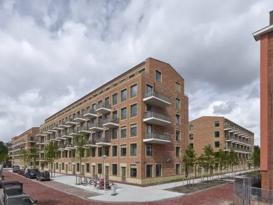De nieuwe bouwblokken hebben gezinswoningen op de onderste twee verdiepingen met een voordeur aan de straat. Boven de maisonnettes liggen appartementen met 1, 2 of 3 slaapkamers. Alle woningen hebben een goede buitenruimte in de vorm van een tuin, balkon of terras. Het parkeren is ingepast onder een pergola met begroeiing en is onderdeel van het groene binnenhof. Het binnenhof is een ontmoetingsruimte voor alle bewoners van het blok.