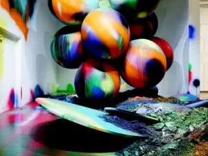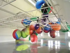 In de grote zaal van het museum zal zij een enorme installatie realiseren met 68 grote en ter plekke beschilderde ballonnen, waarvan sommige een doorsnee hebben van vier meter. Behalve dit kleurige woud van ronde vormen, maken ook een bijna zaalvullende ‘zwerfkei’, een stapeling van langgerekte vormen van styrofoam en twaalf schilderijen uit de periode 2002 tot 2012 deel uit van deze expositie.