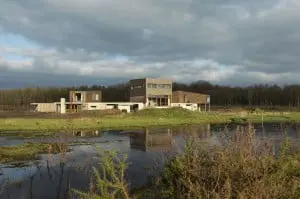 Landgoed Heidevloed was Vincenth Schreurs eerste project als architect. Scheurs begon 15 jaar geleden als bouwkundig tekenaar, voltooide in 2005 de Academie van Bouwkunst in Arnhem en startte in 2007 zijn eigen bureau, toen hij bij het ontwerp voor Heidevloed werd betrokken door WZH+ architecten. De ontwikkeling van de drie huizen en het omringende openbare park heeft heel wat voeten in de aarde gehad. Drie (voor elkaar onbekende) opdrachtgevers met verschillende budgetten en individuele woonwensen, samenbrengen in één krachtig ontwerp, dat ook voldoende privacy biedt.