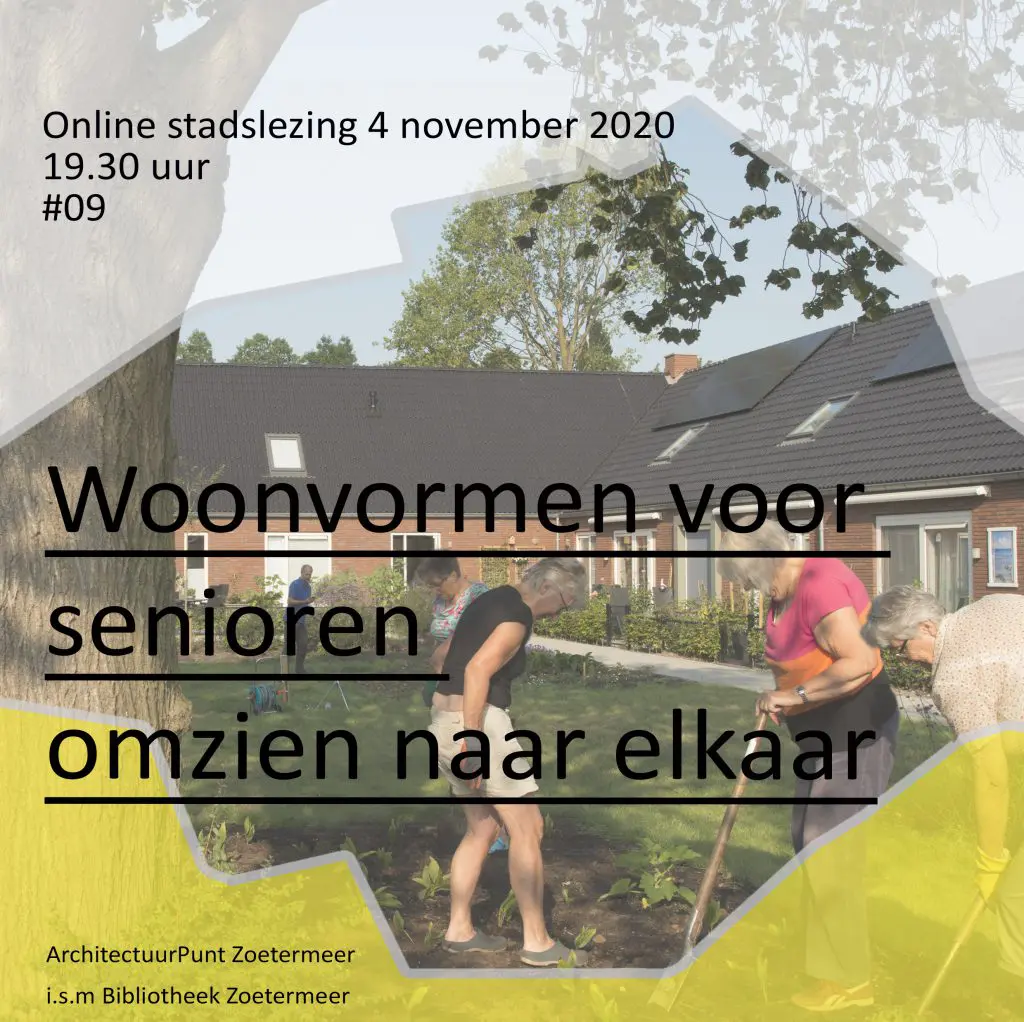 ArchitectuurPunt Zoetermeer organiseert 4 november een online lezing over woonvormen voor senioren. Peter Boelhouwer (hoogleraar Volkshuisvesting) vertelt over de verschillende woonwensen. Yvonne Witter (ZorgSaam Wonen) gaat in hoe mensen met elkaar ouder kunnen worden op de manier die zij zelf willen.