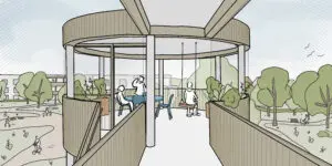 Een bijzonder element in het plan zijn de ‘torentjes’. Waar wonen op de verdieping normaliter als nadeel wordt gezien door veel bewoners, maken de ‘uitkijktorens’ dat juist tot een unieke kwaliteit die op deze plek in het park goed tot zijn recht komt. De torentjes kennen teven een dubbelgebruik als vluchttrap.