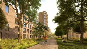 Op loopafstand van het historische stadscentrum van Breda ligt het voormalige Euretco-terrein. Hier komt een nieuwe autovrije woonwijk. MIX architectuur maakte het stedenbouwkundige plan en het ontwerp van de ruim 300 woningen in opdracht van Nederlandse Bouw Unie en Maas-Jacobs. Het landschapsontwerp is van MTD Landschapsarchitecten.