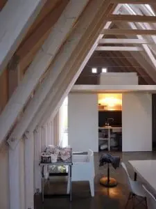 De gebouwtjes zelf zijn 100% van hout. De buitenwanden en het dak zijn van Stellac, de spanten van vuren, de binnenwanden van underlayment, de isolatie van vlas.