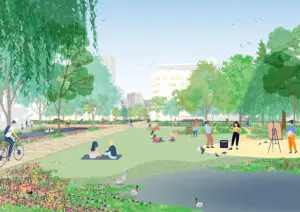 Door de toevoeging van circa 8 duizend woningen en cultureel-maatschappelijke voorzieningen ontstaat niet alleen een compleet stadshart, maar worden ook de goede condities voor een mobiliteitstransitie gecreëerd. Door met name stedelijke blokken toe te voegen, kan de gewenste bevolkingstoename plaatsvinden zonder dat de wijk haar ruimtelijkheid verliest.