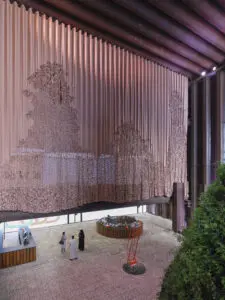 V8 Architects: ‘Het Nederlands paviljoen is het toonbeeld van een publiek gebouw met een toekomstgerichte benadering. Het is het resultaat van een sector-overstijgende samenwerking met jonge innovaties om concrete oplossingen voor fundamentele vraagstukken als waterschaarste, voedselzekerheid en de stijgende vraag naar energie te laten zien.’