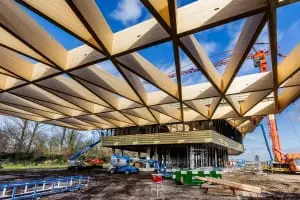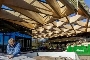 Bouwkundig aannemer is Van Wijnen uit Dordrecht en IMd uit Rotterdam ontwierp de houten constructie. Komend voorjaar wordt het parkeerterrein voor 4500 auto’s en 1000 touringcars in gebruik genomen.