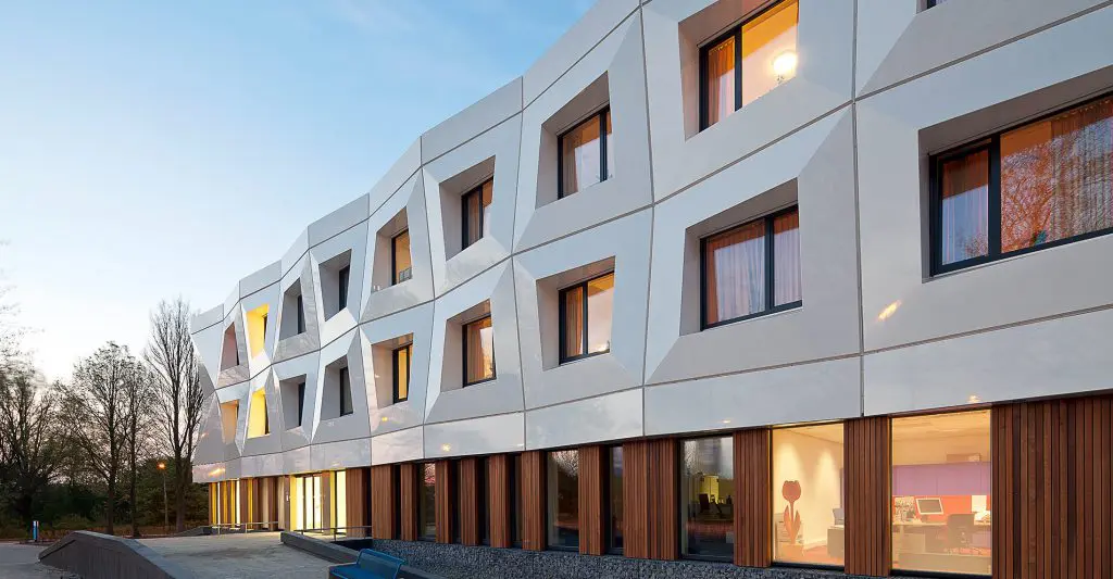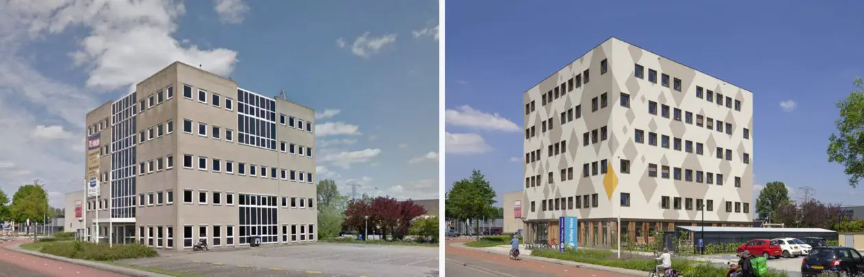 KAW Architecten heeft samen met Dura Vermeer in 10 maanden tijd een voormalig kantoorgebouw in Capelle aan den IJssel getransformeerd tot een duurzaam opvanghuis voor slachtoffers van geweld. Alles is gericht om hen een nieuwe toekomst te geven. En dat is wat het nieuwe gebouw wil zeggen: de bewoners weer laten stralen als een diamant. Dit komt naar voren op de gevel in een ruitvormig patroon. Veilige Veste van Stichting Fier wordt 16 september door Prinses Beatrix officieel geopend.