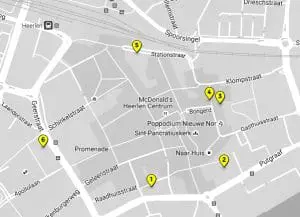 Beleef CityLiv op door de Experience Route te volgen. De route leidt je langs de zes kantelende, huisvormige installaties die reageren op hun direct omgeving. Het zijn tot de verbeelding sprekende kunstobjecten die ‘drijven’ in het centrum van de stad Heerlen. Ze zijn opgebouwd uit metalen stud frames, die met elkaar verbonden zijn door blauwe platen, verkregen uit de sloop van een psychiatrische inrichting (ontworpen door architect Niek Bisscheroux).