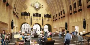Met het eerdere voorlopig ontwerp als uitgangspunt maakte Rijnboutt een vlekkenplan, compleet met impressies die laten zien welke ingrepen nodig zijn om in het gebouw (zo’n 12 duizend vierkante meter) een moderne bibliotheek onder te brengen. Die gaat tot de mooiste ter wereld behoren. Dat komt door de centrale hal, die volgens Vermeesch van wereldniveau is. ‘Die hal is schitterend. In ons ontwerp vormt hij de centrale publieke ontmoetingsplaats, een overdekt stadsplein met ruimte voor evenementen, horeca, leestafels, een plek waar mensen kunnen afspreken, elkaar kunnen ontmoeten.