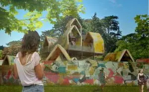 Floor heeft samen met medestudenten Alice Jansen en Marthe Doornbos het ontwerp technisch en architectonisch uitgewerkt. Het ontwerp is een soort dorp, en bestaat uit dertig modules die tot vijftien huisjes worden geschakeld. Floor maakte een constructie van steigermateriaal en hergebruikt hout. De blikvanger van het paviljoen is de bekleding. Van shampooflessen is plaatmateriaal gemaakt. Zestig flessen zijn in stukjes geknipt en gesmolten in een tosti-apparaat, tussen bakpapier. Het resultaat waren mooi gekleurde platen.