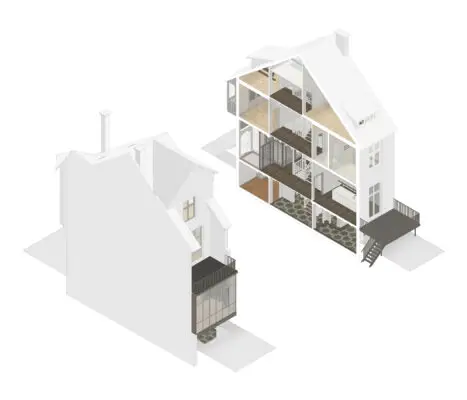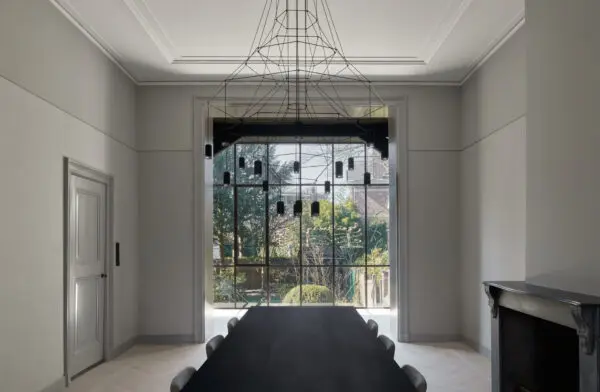 De ontwerpvisie van het bureau richtte zich op het herstellen en versterken van de ruimtelijke kwaliteiten en bijzondere kenmerken van het huis. Nieuwe toevoegingen verwijzen naar de geschiedenis van het pand, maar zijn tegelijkertijd onmiskenbaar eigentijds. Zo werd de twintigste-eeuwse serre vervangen door een volledig glazen uitbreiding, die de relatie tussen interieur en tuin intensiveert. Boven het trappenhuis is het oorspronkelijke daklicht hersteld, waardoor daglicht opnieuw diep in de woning doordringt.