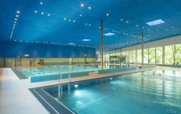 De sportbadhal beschikt over een 25 meter lang zwembad met zes banen. Daarnaast duikplanken van één en drie meter en een gedeeltelijk variabele diepte die kan worden ingesteld met behulp van een hefbodem. Hierdoor is het zwembad geschikt voor recreatief zwemmen, schoolklassen en sportclubs. Het aanbod wordt aangevuld met een apart instructiebad met brede instaptrappen.