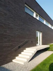 Voor de façades van de villa koos Loxodrome design & innovation de baksteen Alt Berlin van baksteenfabrikant Hagemeister. De architect wilde graag een baksteen die het ontwerp in al zijn strakheid onderstreepte. De baksteen is goed in staat het kubistische van het ontwerp te benadrukken. De steen Alt Berlin is langwerpig en de stenen liggen kop aan kop. Bij de lintvoegen is doorstrijkmortel gebruikt en er is een donkere voeg gezet, hierdoor komt de façade van afstand over als een vlak.