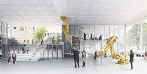 In het glazen atrium van het gebouw, de ‘Living Lobby’, worden met expositieruimtes, werkplekken en horeca verbindingen gelegd tussen mens en techniek, innovatie en ondernemerschap. De ‘Living Lobby’ fungeert 24/7 als hart van de buurt en als knooppunt in het gebouw; van hieruit zijn alle functies zichtbaar én bereikbaar. Op de verdiepingen wordt gewoond, al dan niet tijdelijk, in een hotel, in studio’s en in loftwoningen.