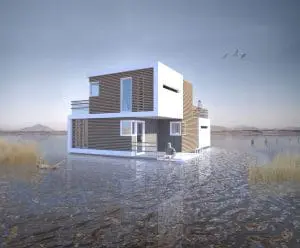 Het architectonisch ontwerp bestaat uit twee autonome units die één lijken te zijn. De twee losse onderdelen komen samen tot een moderne woning. De koolstofvezel- en houtelementen zorgen voor flexibiliteit en kunnen zich aanpassen aan de omgeving. De units kunnen zich op een slimme manier ontkoppelen en alleen verder drijven op het water. Het ontwerp zorgt er voor dat de thuisbasis stabiel blijft want je hoeft niet te verhuizen.