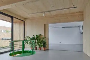 Verder was het een uitdaging om elke werkplek van daglicht te voorzien. Studiogebouw A kreeg als laatste van acht kavels invulling waardoor het gebouw aan drie kanten is ingesloten. Door te interveniëren in de plattegrond van elke verdieping kan het licht alsnog alle ruimten bereiken. Daarbij heeft elke werkruimte een buitenruimte gekregen, gevuld met groeiend groen om de biodiversiteit te stimuleren. Met het groen is niet alleen een gezond binnen- en buitenklimaat gecreëerd maar ook het eigen uitzicht bepaald.