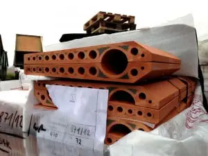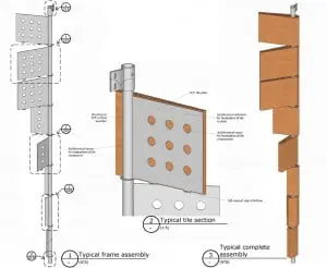 De terracotta gevelelementen, een speciale op maat gemaakte versie van de tegel Longoton, zijn gemaakt bij de Duitse firma Moeding en zijn gemonteerd op verticale metalen houders. Ze matigen de warmtebelasting op de noordelijke gevel, met behoud van daglichttoetreding en uitzicht vanaf de werkplekken binnen.