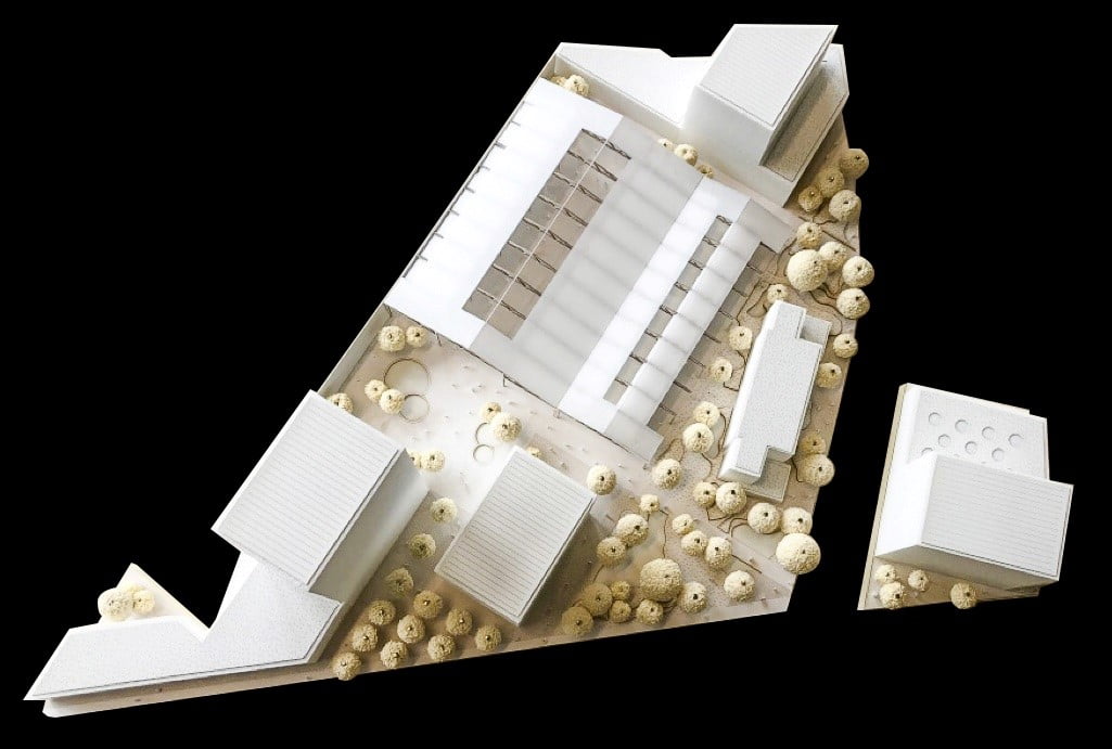 Het winnende ontwerp stelt een transformerende visie van de historische stalen hal (21.000 m2) voor. De architect ziet deze als een levendig knooppunt voor evenementen in combinatie met nieuw te bouwen omliggende hedendaagse kantoorvolumes. Het ontwerp voorziet in groene pleinen die een gezonde, levendige woon- en werkomgeving bevorderen. Het zorgt tevens voor afwisseling tussen bouwvolumes.