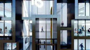 MoederscheimMoonen Architects is verantwoordelijk voor het ontwerp van het nieuwe bedrijfspand voor PB Techniek in Maasdijk aan de A20. Onlangs is de bouw gestart. In het ontwerp zijn de kantoorvloeren over 3 lagen verdeeld langs de gevel van de achtergelegen productiehal. Er ontstaan relatief ondiepe kantoorvloeren waardoor daglicht op de vloeren gemaximaliseerd wordt. Dit wordt versterkt door de glazen puien die van vloer tot plafond zijn ontworpen.
