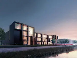 MoederscheimMoonen Architects is verantwoordelijk voor het ontwerp van het nieuwe bedrijfspand voor PB Techniek in Maasdijk aan de A20. Onlangs is de bouw gestart. In het ontwerp zijn de kantoorvloeren over 3 lagen verdeeld langs de gevel van de achtergelegen productiehal. Er ontstaan relatief ondiepe kantoorvloeren waardoor daglicht op de vloeren gemaximaliseerd wordt. Dit wordt versterkt door de glazen puien die van vloer tot plafond zijn ontworpen.