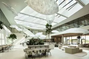 In het uitgebreide masterplan, waarvoor Ex Interiors de samenwerking heeft gezocht met JDdV Architecten, wordt ‘het werken van de toekomst’ gezien als verbinden en faciliteren. Hiervoor is een inspirerende, gezonde en productieve werkomgeving nodig waar ruimte is voor toevallige ontmoetingen en kruisbestuiving van interdisciplinaire teams en bedrijven.
