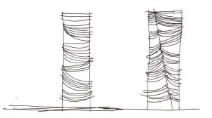 Het lijnenspel heeft geleid tot een opmerkelijke materiaalkeuze voor de gevel namelijk: touw. Touw heeft een natuurlijke kleur en uitstraling, maar is tegelijk soepel en relatief zwaar waardoor het zal gaan doorhangen. Door het afwisselend strak en los om de toren te wikkelen ontstaan de kenmerkende lijnen van de Sahara.
