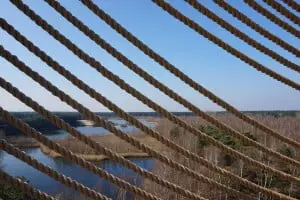 De bezoekers kijken bij het beklimmen van de toren door de touwen heen naar het landschap. De toren heeft drie platforms. Het laagste platform reikt richting het water en is door de hellingbaan ook toegankelijk voor mensen die minder goed ter been zijn. Vanaf dit niveau kan men de trap nemen naar een hoogte van bijna dertig meter. Halverwege is er een platform en bovenop kan men genieten van het uitzicht. De relingen van de trap en de platforms zijn bekleed met hout.