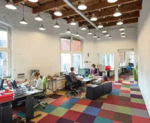 Witte muren, licht vuren triplex, constructiehout, enkelzijdig bekleden wanden en in de details toegepaste primaire kleuren vormden het palet waarmee steeds gewerkt werd. Na elke aanpassing werd gekeken wat de werkelijke kosten waren en hoe de volgende stap zou worden aangepakt. Om de kosten laag te houden, werden er tweedehands spullen en restmateriaal van andere bouwprojecten gebruikt en hierdoor bleef het bouwproces van NNT beheersbaar.