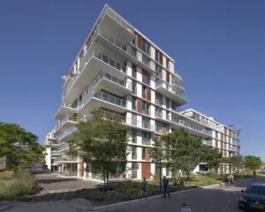 Het door Amvest en Ymere ontwikkelde complex omvat een grote diversiteit van 92 vrije sector huurwoningen. Comfort en woongenot stonden voorop in het ontwerp. Materialisering, indeling, buitenruimte, maar ook de schaal van het complex dragen bij aan de beleving. In plaats van één massief L-vormig volume te maken heeft DP6 er voor gekozen om twee kleinere, compacte woontorens te realiseren met elk een eigen ontsluiting. Alleen het volledig transparante entreegebied wordt gedeeld.
