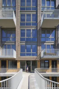De hoge plint aan de Boezemweg sluit aan op het stedelijke leven. De onderste drie verdiepingen van het volume richten zich op de straat, terwijl de bewoners vanuit de bovenste verdiepingen van het uitzicht op de Rotterdamse skyline kunnen genieten.