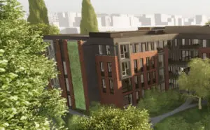 Het ontwerp voor de nieuwe woonlocatie Geert de Leeuw telt 85 moderne appartementen en twee dagbestedingsruimten. Op elke etage zijn algemene ruimtes aanwezig. Denk aan een gezamenlijke huiskamer met keuken en een werkruimte voor medewerkers. Daarnaast is er op elke verdieping een groot balkon dat als terras is te gebruiken. Deze is voor gezamenlijk gebruik.